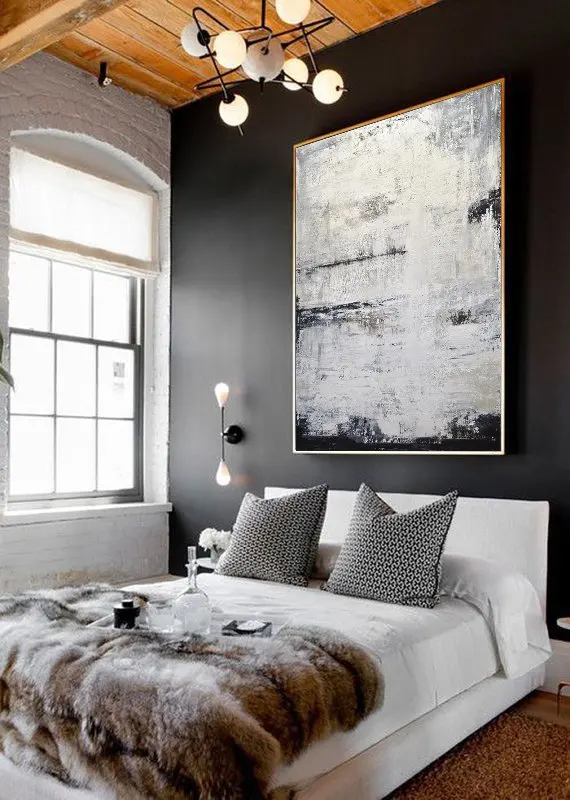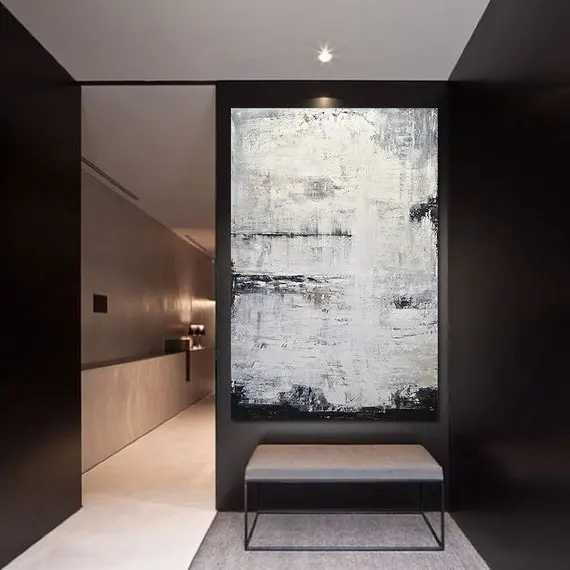 抽象繪畫當代藝術油畫原始灰色垂直紋理設計